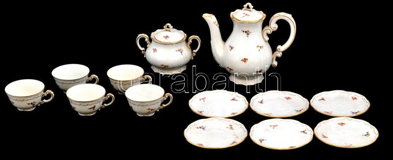 Leírás: Zsolnay porcelán virágmintás mokkás készlet, részben kézzel festett, hiányos