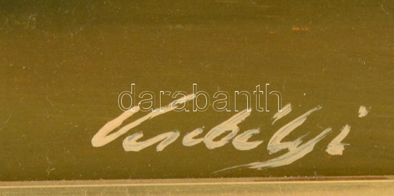 Leírás: Verebélyi Tibor (?-): Virágcsendélet, olaj, farost, jelzett, keretben, 44x55 cm