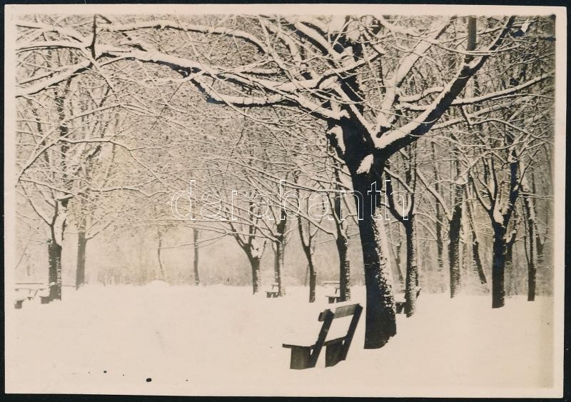 1929. január 27. Kinszki Imre (1901-1945) budapesti fotóművész hagyatékából jelzés nélküli, de a szerző által datált, vintage fotó (Városliget télen, ez a szerző által számozott 80. felvétele), 6x8,5 cm