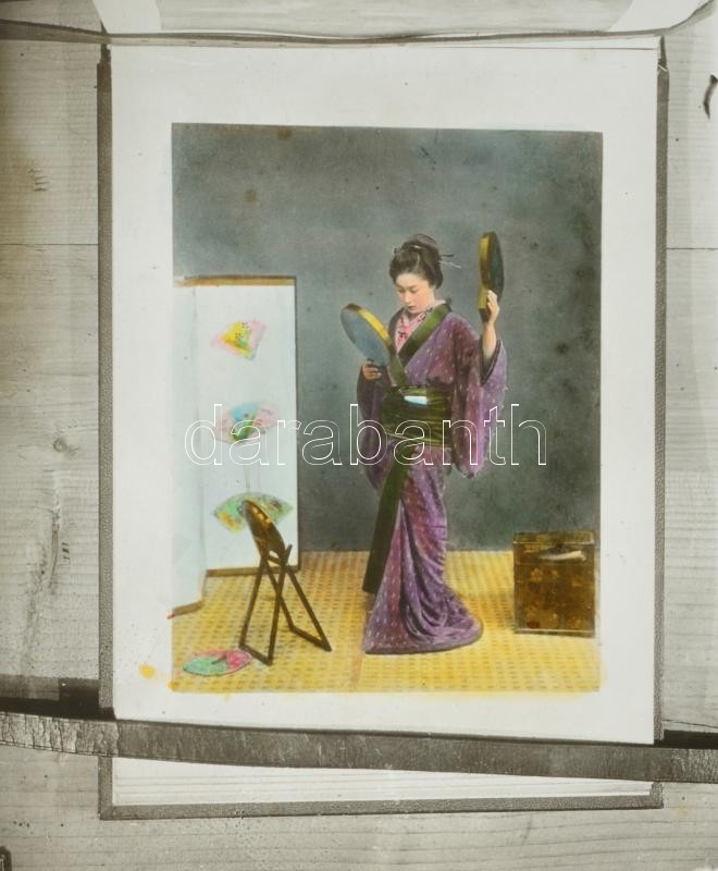Leírás: cca 1900 Üvegnegatívok, diák, fekete-fehér és színezett, különböző országokból, Magyarország, Kína, Japán, stb., 27 db