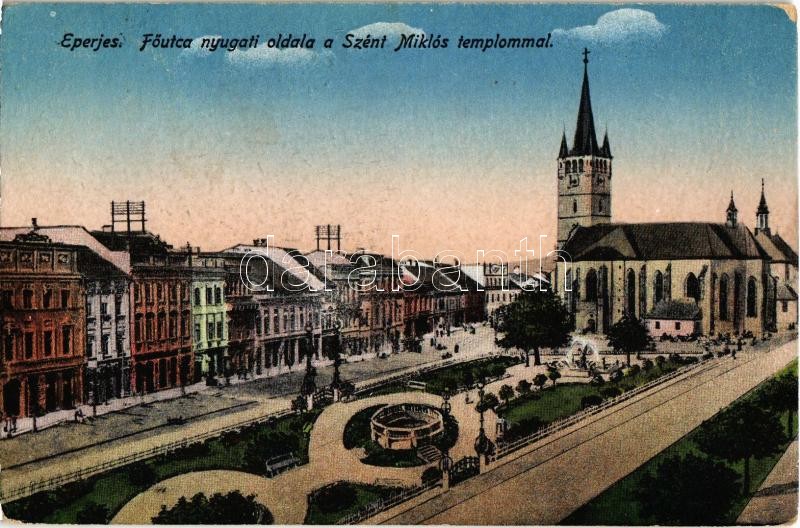Eperjes, Presov; Fő utca nyugati oldala a Szent Miklós templommal, üzl... https://www.darabanth.com/hu/364-Gyorsarveres/364.0/Kepeslapok/Felvidek~1000008/Eperjes-Presov-Fo-utca-nyugati-oldala-a-Szent-Miklos-templommal-uzletek-main-street-church-~II1969547
