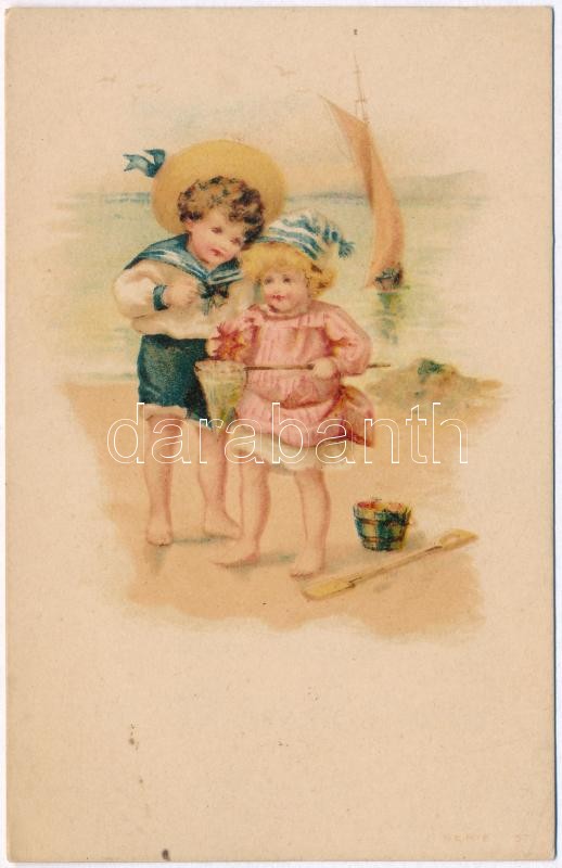 Children on the beach. litho, mini card (10,8 x 7 cm) https://www.darabanth.com/hu/364-Gyorsarveres/364.0/Kepeslapok/Gyerek~1000059/Children-on-the-beach-litho-mini-card-10-8-x-7-cm~II2105406