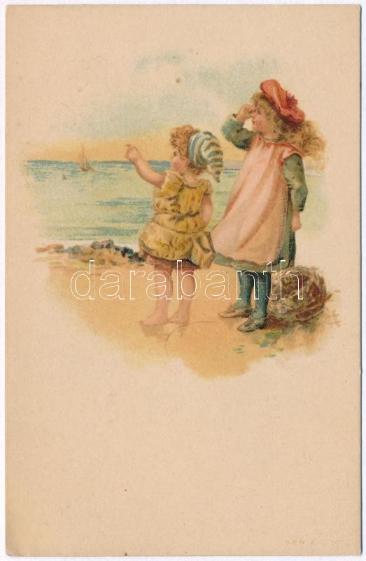 Children on the beach. litho, mini card (10,8 x 7 cm) https://www.darabanth.com/hu/364-Gyorsarveres/364.0/Kepeslapok/Gyerek~1000059/Children-on-the-beach-litho-mini-card-10-8-x-7-cm~II2105408