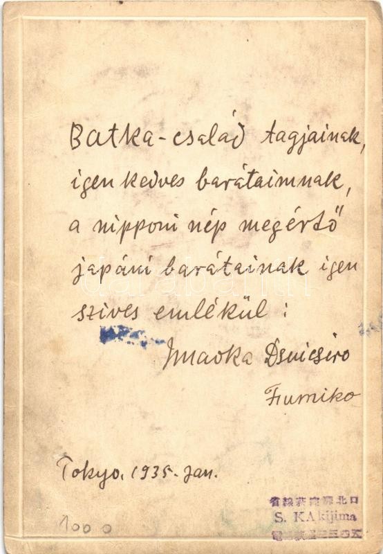 1935 Tokyo, Japanese mand and geisha. S. Kakijima photo (non PC) (EK) https://www.darabanth.com/hu/364-Gyorsarveres/364.0/Kepeslapok/Japan~1000032/1935-Tokyo-Japanese-mand-and-geisha-S-Kakijima-photo-non-PC-EK~II2108242