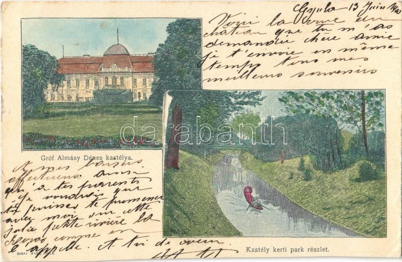 1900 Gyula, Gróf Almásy Dénes kastélya, kastélykert, park, csónakázók.... https://www.darabanth.com/hu/364-Gyorsarveres/364.0/Kepeslapok/Magyarorszag~1000006/1900-Gyula-Grof-Almasy-Denes-kastelya-kastelykert-park-csonakazok-Dobay-Janos-kiadasa~II2104133