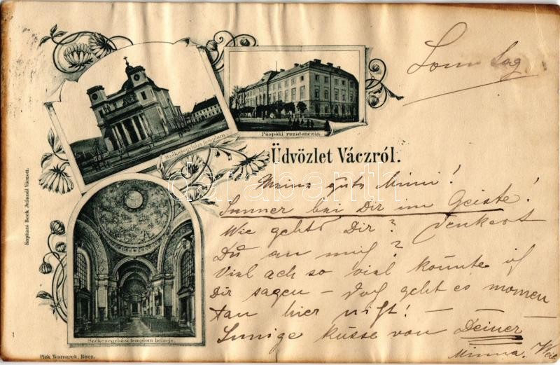 1901 Vác, Székesegyházi templom, belső, Püspöki rezidencia. Kiadja Bec... https://www.darabanth.com/hu/364-Gyorsarveres/364.0/Kepeslapok/Magyarorszag~1000006/1901-Vac-Szekesegyhazi-templom-belso-Puspoki-rezidencia-Kiadja-Beck-Ivan-Art-Nouveau-fl~II1962440