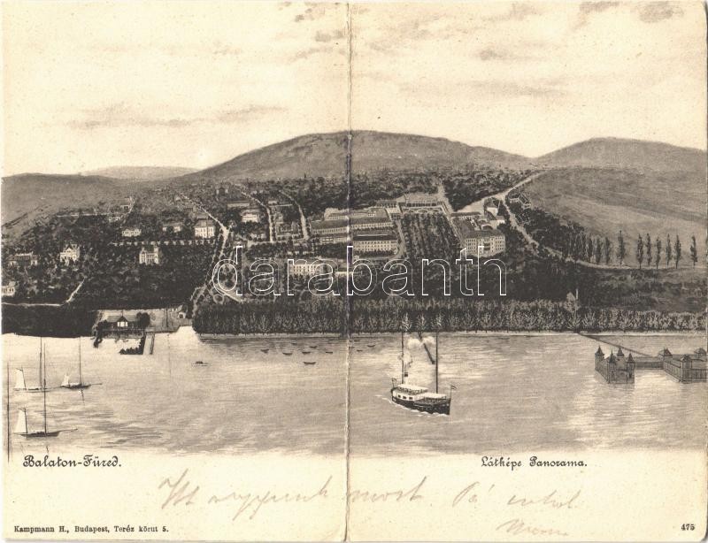 1903 Balatonfüred. Kinyitható panorámalap. Kampmann H. kiadása (r) https://www.darabanth.com/hu/364-Gyorsarveres/364.0/Kepeslapok/Magyarorszag~1000006/1903-Balatonfured-Kinyithato-panoramalap-Kampmann-H-kiadasa-r~II2101219
