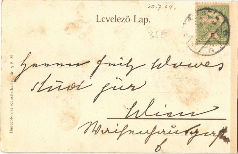 Leírás: 1904 Budapest I. Várbazár, Királyi vár. Taussig Arthur 3267. Hancolorirte Künstlerkarte Br. & S.M. (r)