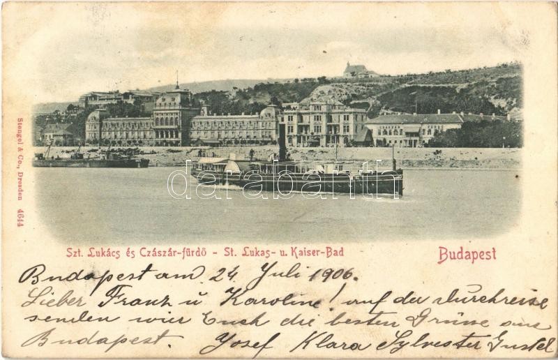1906 Budapest II. Szent Lukács és Császár fürdő, gőzhajó (fl) https://www.darabanth.com/hu/364-Gyorsarveres/364.0/Kepeslapok/Magyarorszag~1000006/1906-Budapest-II-Szent-Lukacs-es-Csaszar-furdo-gozhajo-fl~II2102218