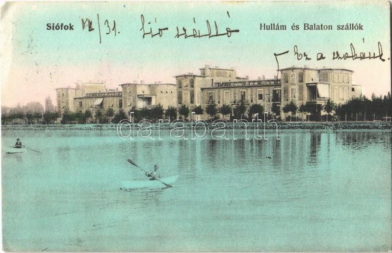 1906 Siófok, Hullám és Balaton szállók, evezős csónak. Balatoni Szövet... https://www.darabanth.com/hu/364-Gyorsarveres/364.0/Kepeslapok/Magyarorszag~1000006/1906-Siofok-Hullam-es-Balaton-szallok-evezos-csonak-Balatoni-Szovetseg-kiadasa-EK~II2103574
