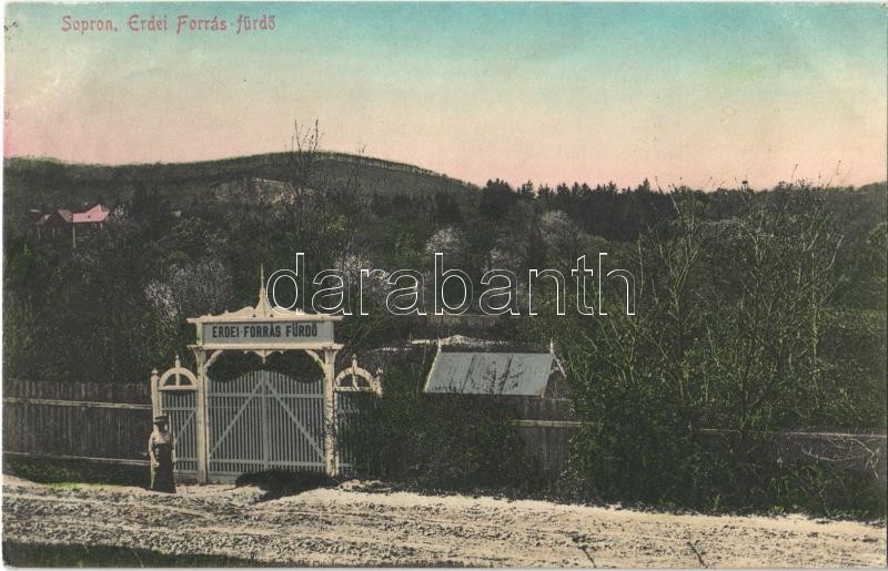 1912 Sopron, Erdei forrás fürdő. Piri Dániel kiadása (EK) https://www.darabanth.com/hu/364-Gyorsarveres/364.0/Kepeslapok/Magyarorszag~1000006/1912-Sopron-Erdei-forras-furdo-Piri-Daniel-kiadasa-EK~II2105772