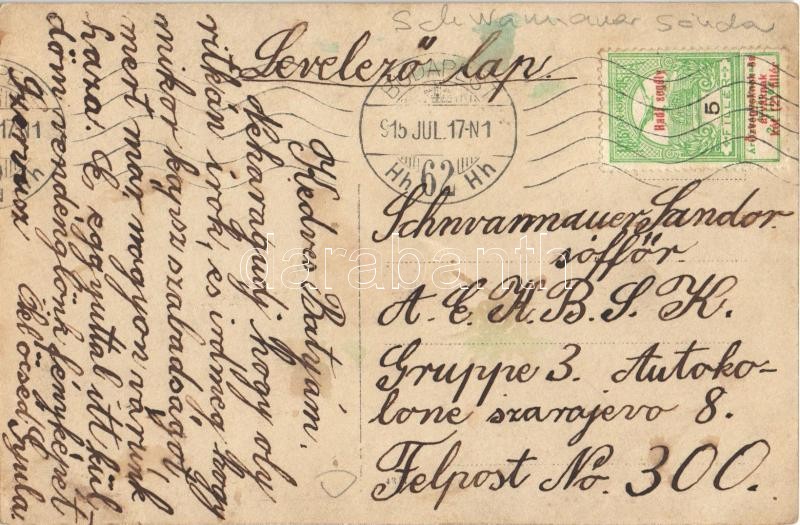 1915 Budapest I. Schwannauer Sándor vendéglője és kocsmája. Krisztina körút 93. Hátoldalon az öccse, Schwannauer Gyula, levele bátyjának a frontra. photo