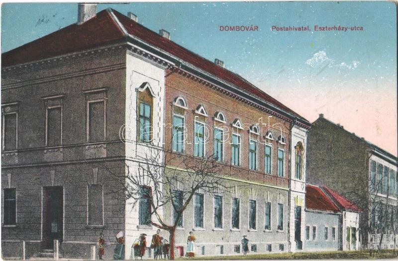 1916 Dombóvár, Posta hivatal, Eszterházy utca https://www.darabanth.com/hu/364-Gyorsarveres/364.0/Kepeslapok/Magyarorszag~1000006/1916-Dombovar-Posta-hivatal-Eszterhazy-utca~II2106944