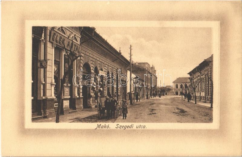 1918 Makó, Szegedi utca, Dégi István Ferenc, Elek Antal üzlete https://www.darabanth.com/hu/364-Gyorsarveres/364.0/Kepeslapok/Magyarorszag~1000006/1918-Mako-Szegedi-utca-Degi-Istvan-Ferenc-Elek-Antal-uzlete~II2108398