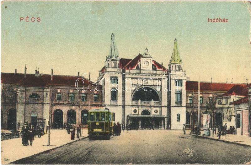 1925 Pécs, Indóház, Vasútállomás, villamos megállóhely (EK) https://www.darabanth.com/hu/364-Gyorsarveres/364.0/Kepeslapok/Magyarorszag~1000006/1925-Pecs-Indohaz-Vasutallomas-villamos-megallohely-EK~II2102876