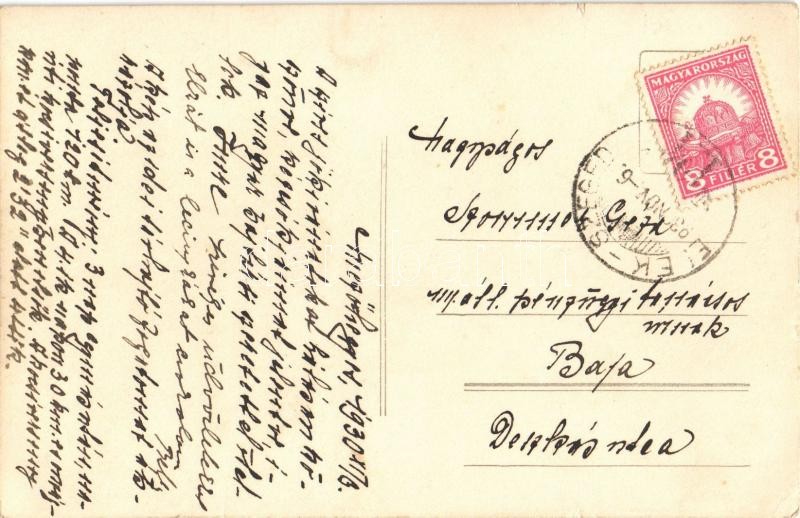 Leírás: 1930 Mezőhegyes, Jelentés Bajára érkező fogathajtó versenyről. photo + "ELEK-SZEGED 124." mozgóposta (EK)