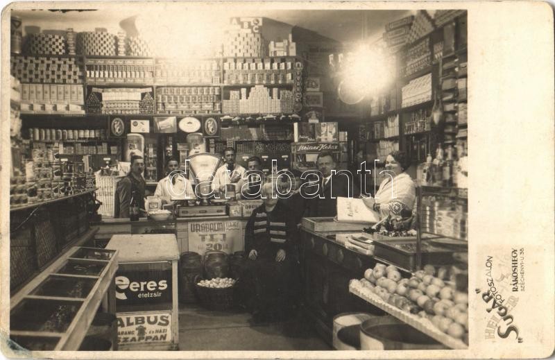 1933 Budapest XVII. Rákoshegy, Csemege üzlet, belső eladókkal, Ceres é... https://www.darabanth.com/hu/364-Gyorsarveres/364.0/Kepeslapok/Magyarorszag~1000006/1933-Budapest-XVII-Rakoshegy-Csemege-uzlet-belso-eladokkal-Ceres-etelzsir-Albus-szappan-~II2108036