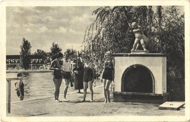 Leírás: 1937 Hajdúszoboszló-gyógyfürdő, ivókút a strandon. Wohlberg hírlapiroda kiadása (EB)