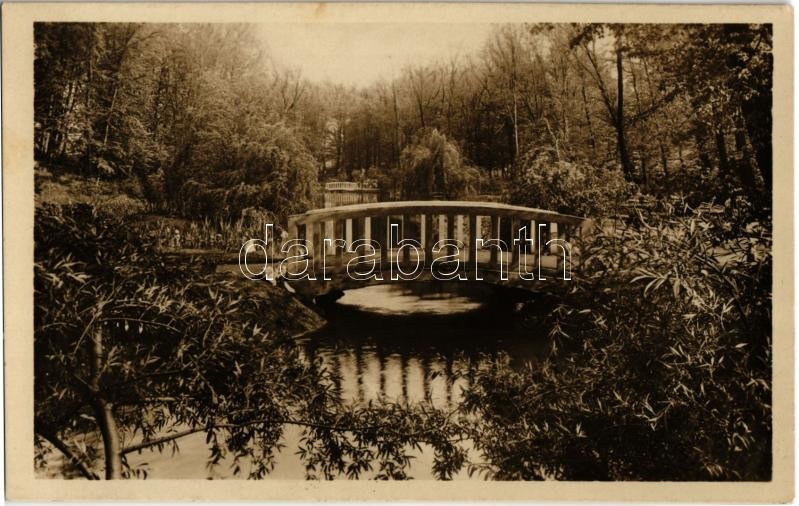 Leírás: 1937 Tatabánya, Magyar Általános Kőszénbánya Részvénytársulat tatai bányászata, Vida Jenő park, fahíd