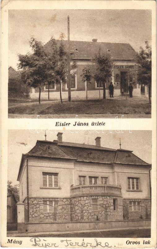 1942 Mány, Orvos lak, Eisler János üzlete és saját kiaádsa (fl) https://www.darabanth.com/hu/364-Gyorsarveres/364.0/Kepeslapok/Magyarorszag~1000006/1942-Many-Orvos-lak-Eisler-Janos-uzlete-es-sajat-kiaadsa-fl~II2102911