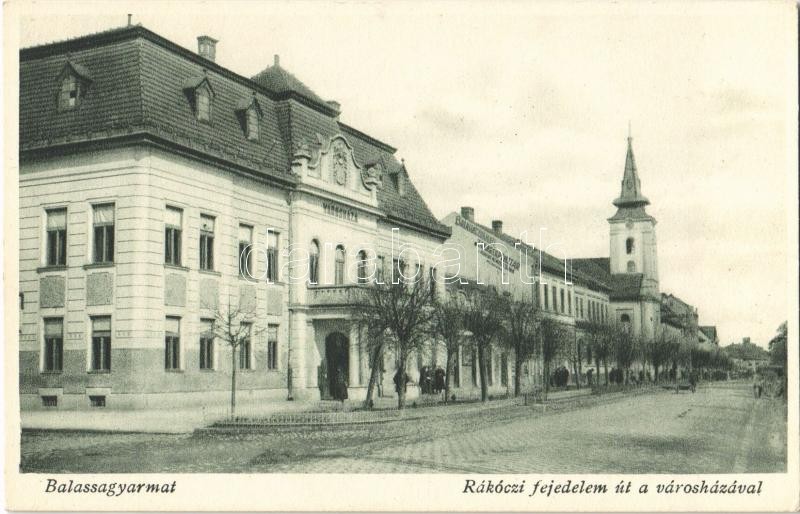 Balassagyarmat, Rákóczi fejedelem út, Városháza, Takarékpénztár reklám... https://www.darabanth.com/hu/364-Gyorsarveres/364.0/Kepeslapok/Magyarorszag~1000006/Balassagyarmat-Rakoczi-fejedelem-ut-Varoshaza-Takarekpenztar-reklamja-a-hazfalon~II2106609