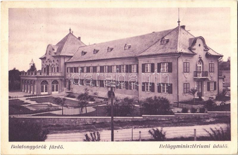 Balatongyörök-fürdő, Belügyminisztériumi üdülő. Malek Károly kiadása https://www.darabanth.com/hu/364-Gyorsarveres/364.0/Kepeslapok/Magyarorszag~1000006/Balatongyorok-furdo-Belugyminiszteriumi-udulo-Malek-Karoly-kiadasa~II2104218