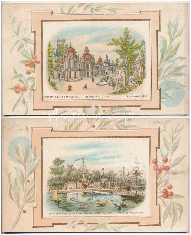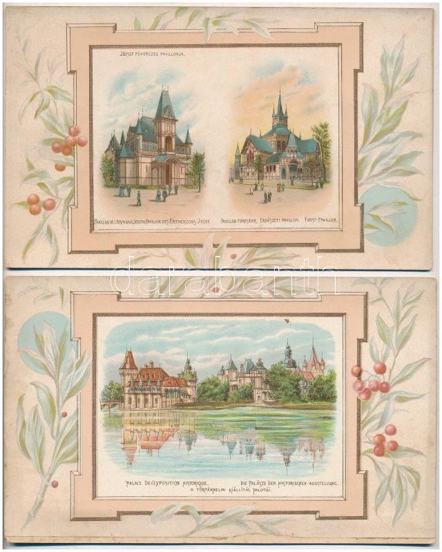 Budapest, Ezredéves Országos Kiállítás - 12 darabos szecessziós litho óriás képeslap sorozat szép használatlan állapotban. Nagyon ritka különlegesség! / Budapester Millenniumsausstellung 1896 - 12 Art Nouveau litho giant postcards in nice unused condition. Very rare series! (21,5 x 13 cm)