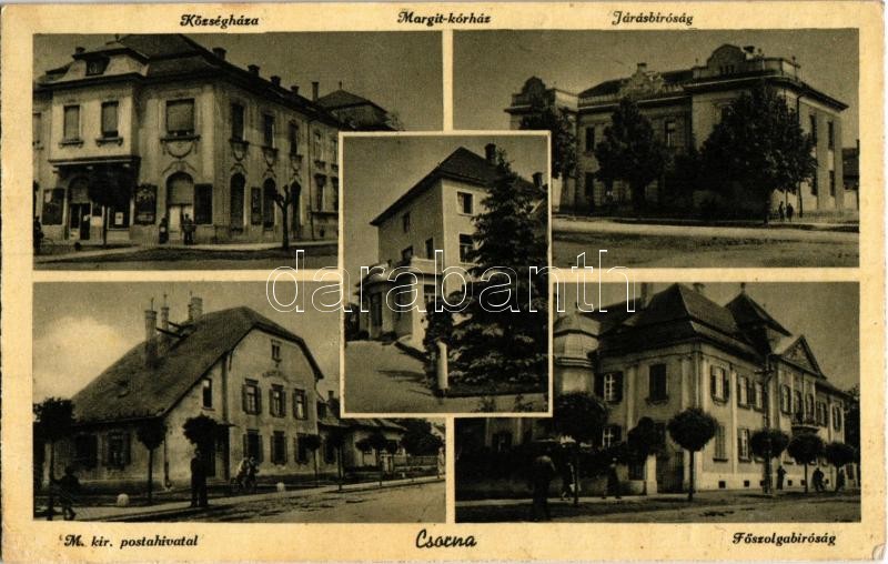 Leírás: Csorna, Községháza, Margit kórház, Járásbíróság, M. kir. posta hivatal, Főszolgabíróság (EK)