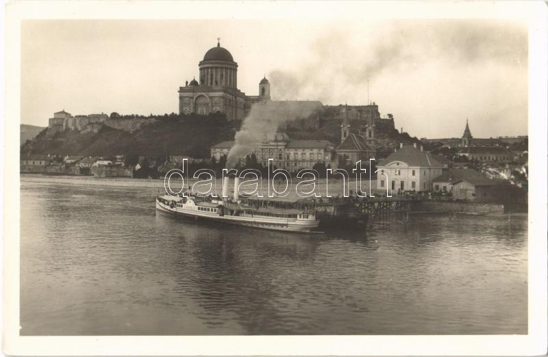 Leírás: Esztergom, Hajóállomás, "Sophie" (később Melk) oldalkerekes személyszállító gőzhajó, Bazilika