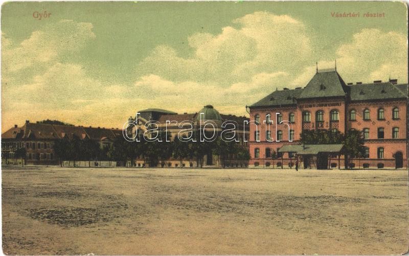 Győr, Vásártéri részlet, M. kir. állami fa- és fémipari szakiskola https://www.darabanth.com/hu/364-Gyorsarveres/364.0/Kepeslapok/Magyarorszag~1000006/Gyor-Vasarteri-reszlet-M-kir-allami-fa-es-femipari-szakiskola~II2106725