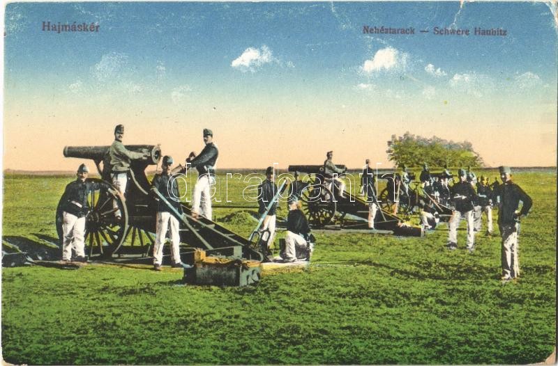 Hajmáskér, Nehéztarack, K.u.K. tüzérek gyakorlata (szakadás / tear) https://www.darabanth.com/hu/364-Gyorsarveres/364.0/Kepeslapok/Magyarorszag~1000006/Hajmasker-Neheztarack-KuK-tuzerek-gyakorlata-szakadas-tear~II2108701
