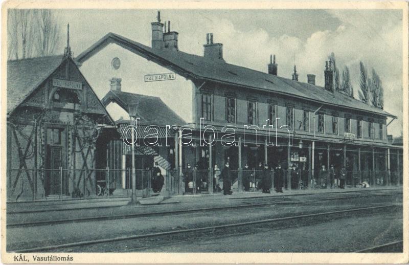 Leírás: Kál, Kál-Kápolna vasútállomás, vasutasok. Hangya Szövetkezet kiadása (EK)