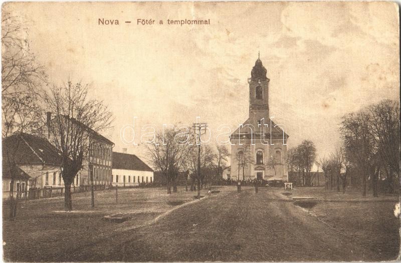 Nova, Fő tér, templom. Szikszay József kiadása (szakadás / tear) https://www.darabanth.com/hu/364-Gyorsarveres/364.0/Kepeslapok/Magyarorszag~1000006/Nova-Fo-ter-templom-Szikszay-Jozsef-kiadasa-szakadas-tear~II2104332