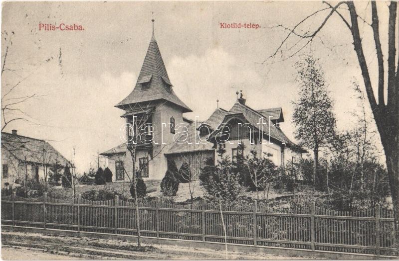 Piliscsaba, Klotild telep, Siló villa. Rigócz József kiadása (EK) https://www.darabanth.com/hu/364-Gyorsarveres/364.0/Kepeslapok/Magyarorszag~1000006/Piliscsaba-Klotild-telep-Silo-villa-Rigocz-Jozsef-kiadasa-EK~II2106983
