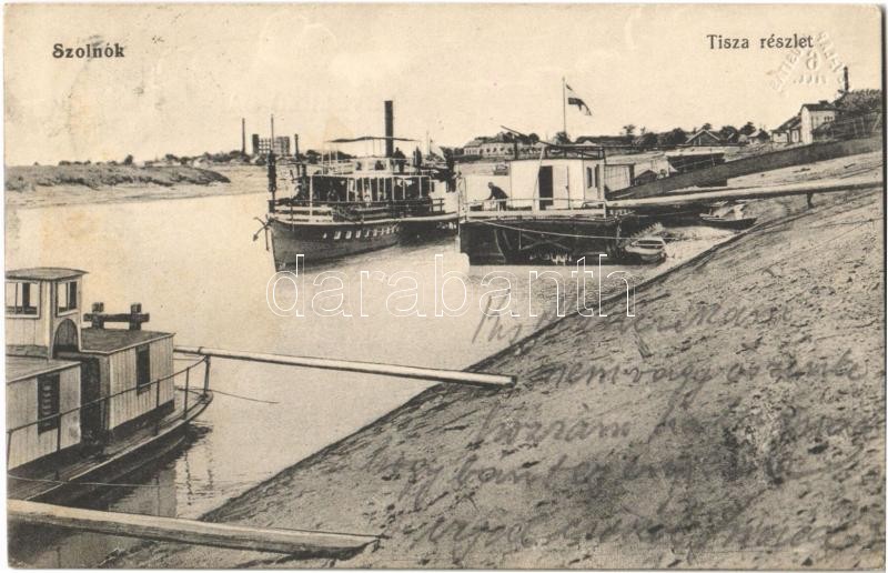 Szolnok, Tisza részlet, kikötő, gőzhajó https://www.darabanth.com/hu/364-Gyorsarveres/364.0/Kepeslapok/Magyarorszag~1000006/Szolnok-Tisza-reszlet-kikoto-gozhajo~II2106952