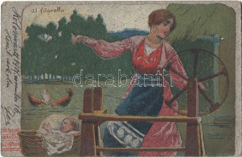 Al filarello / Italian art postcard, spinning lady, folklore. Cartolin... https://www.darabanth.com/hu/364-Gyorsarveres/364.0/Kepeslapok/Muveszlapok~1000073/Al-filarello-Italian-art-postcard-spinning-lady-folklore-Cartolina-Abruzzo-s-B-Cascella~II2106389