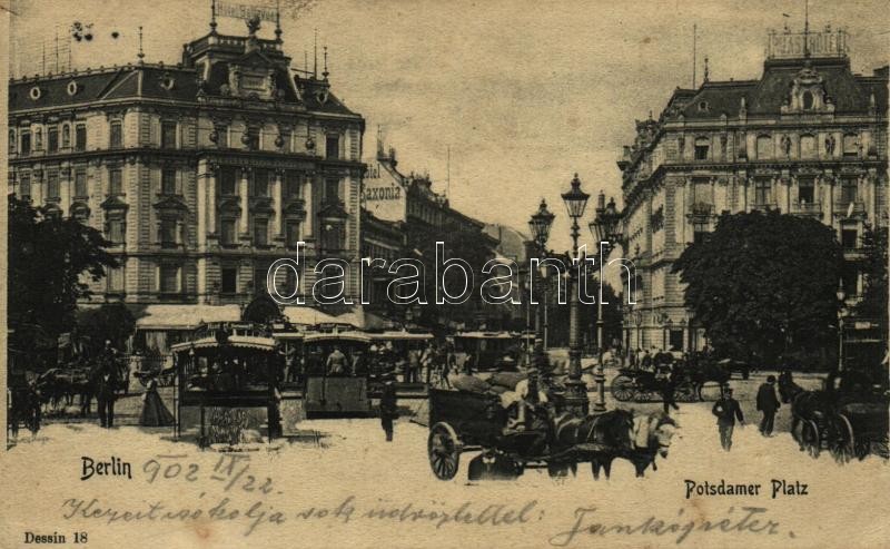 1902 Berlin, Potsdamer Platz / square, horse-drawn tram, hotel (EK) https://www.darabanth.com/hu/364-Gyorsarveres/364.0/Kepeslapok/Nemetorszag~1000040/1902-Berlin-Potsdamer-Platz-square-horse-drawn-tram-hotel-EK~II2085883