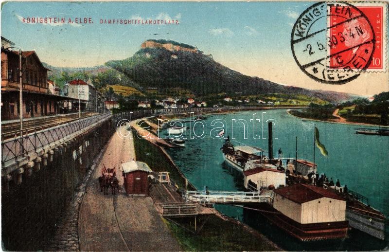 1930 Königstein (Elbe), Dampfschifflandeplatz / steamship station, rai... https://www.darabanth.com/hu/364-Gyorsarveres/364.0/Kepeslapok/Nemetorszag~1000040/1930-Konigstein-Elbe-Dampfschifflandeplatz-steamship-station-railway-station-fortress-castl~II1999675