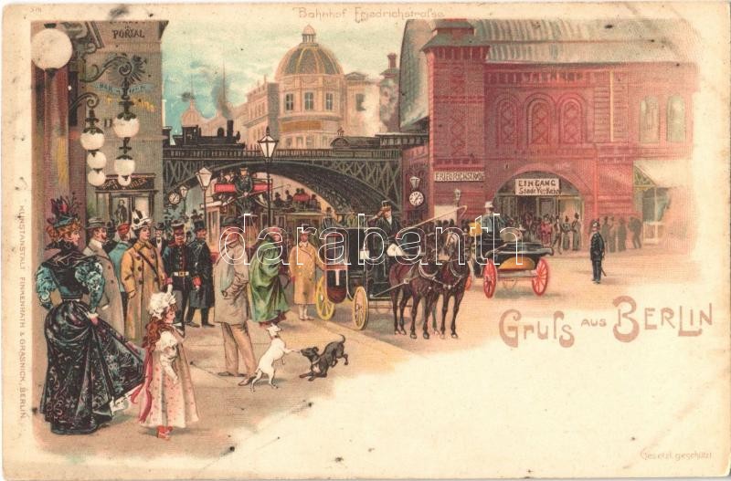 Leírás: Berlin, Bahnhof Friedrichstrasse / railway station. Kunstantalt Finkenrath & Grasnick litho