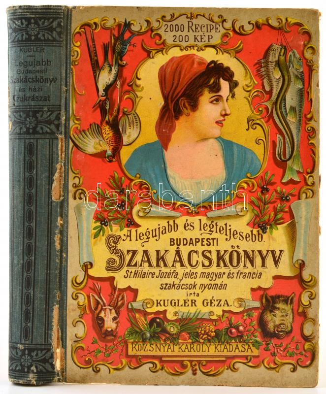Kugler Géza: A legújabb és legteljesebb gyakorlati nagy budapesti szakácskönyv és házi cukrászat. Híres magyar és francia szakácsművészek nyomán, számos képpel. Bp., Rozsnyai Károly. Kiadói félvászon kötés, kissé kopottas állapotban.