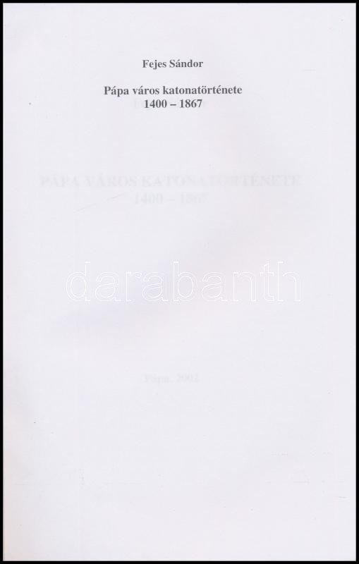 Fejes Sándor: Pápa város katonatörténete. 1400-1867, Pápa, 2002, Pápai... https://www.darabanth.com/hu/364-Gyorsarveres/364.0/Konyvek/Konyvek-Militaria-Katonasag~1500007/Fejes-Sandor-Papa-varos-katonatortenete-1400-1867-Papa-2002-Papai-Huszaregyesulet~II2107587