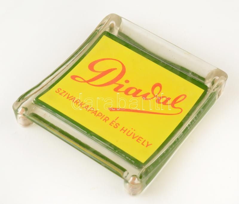 Leírás: Diadal szivarkapapír és Hüvely üveg pénzvisszaadó tál, kopásnyomokkal, 19×17 cm