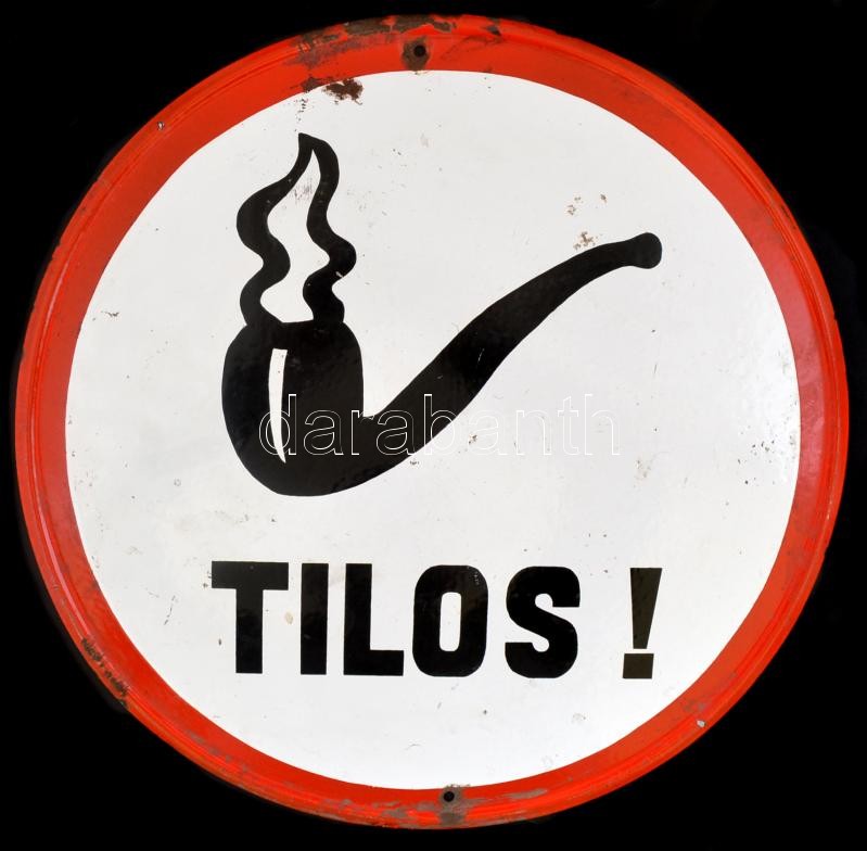"Dohányozni tilos!" - zománcozott fém tábla, sérülésekkel, d: 40 cm https://www.darabanth.com/hu/364-Gyorsarveres/364.0/Mutargy-papirregiseg-egyeb/Bolhapiac~500011/Dohanyozni-tilos-zomancozott-fem-tabla-serulesekkel-d-40-cm~II2104485