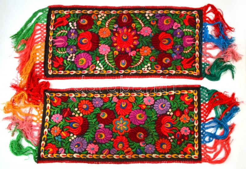 Leírás: Kalocsai mintás hímzett zongoraterítő, 2 db, 60×28 cm