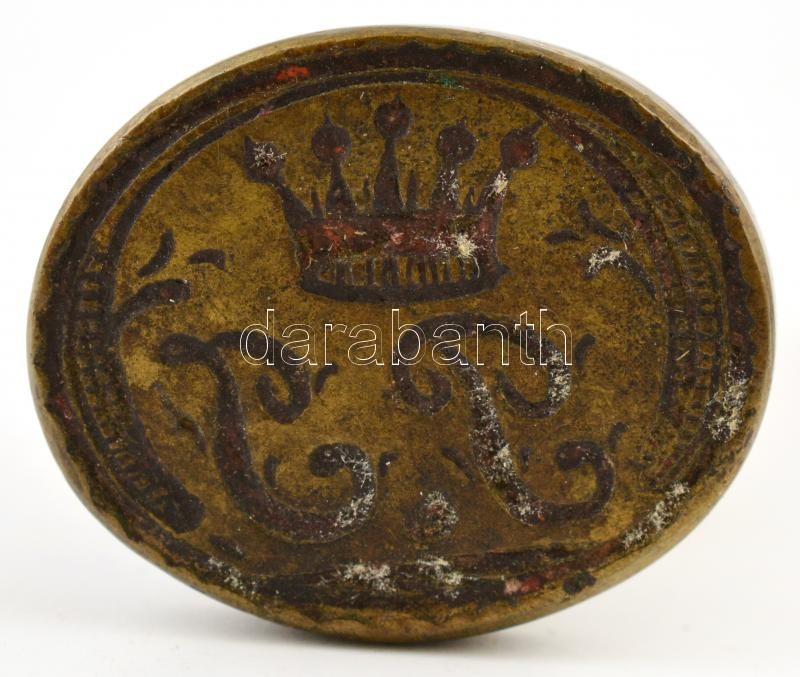 Leírás: Monogramos réz pecsétnyomó, h: 4 cm