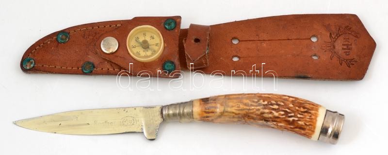 Leírás: Őzagancsos vadász tőr iránytűs tokkal 20 cm