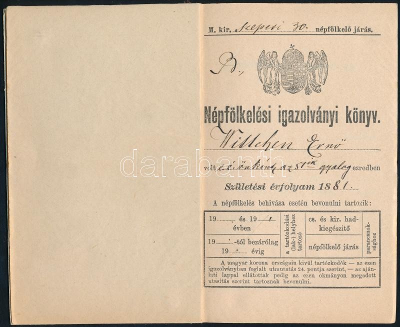 1905 Népfölkelési igazolvány Igló https://www.darabanth.com/hu/364-Gyorsarveres/364.0/Mutargy-papirregiseg-egyeb/Militaria~500027/1905-Nepfolkelesi-igazolvany-Iglo~II2106587