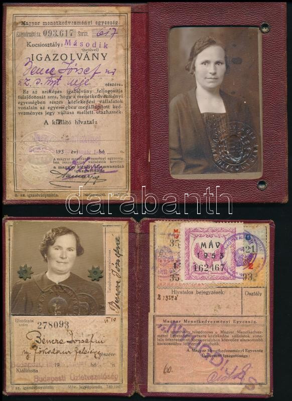 1935 MÁV arcképes igazolvány, 2 db https://www.darabanth.com/hu/364-Gyorsarveres/364.0/Mutargy-papirregiseg-egyeb/Okmanyok~500017/1935-MAV-arckepes-igazolvany-2-db~II2102805