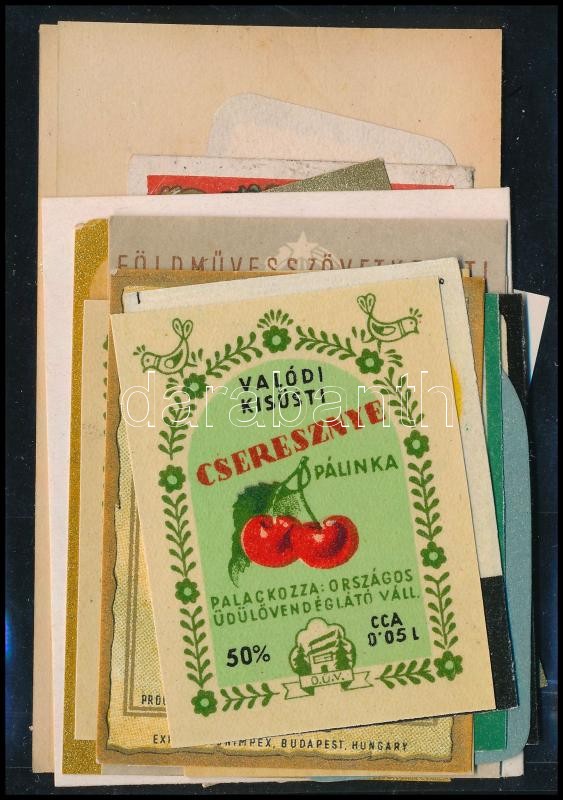 Leírás: 22 db ritka italcímke (Valódi Kisüsti Cseresznye Pálinka, Császárkörte Likőr, stb.)