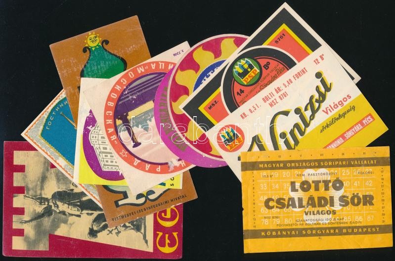 Leírás: Ital és bőröndcímkék (Pannonia Sörgyára, magyar Országos Söripari Vállalat, Deutsche Lufthansa, stb.), 10 db